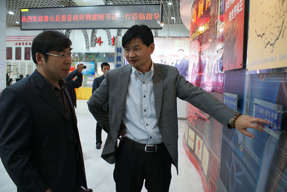 河南省平頂山市魯山縣委縣政府荊建剛書記一行來浪莎考察,浪莎總裁翁榮弟親自接待。